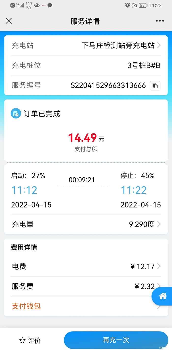 充电:个人充电桩还没安装,这个我还不急,后面慢慢申请, 特意开去家旁边1.5公里的充电站试了两次,一次10分钟充了4.6度电,一次10分钟充了9.2度电。合计20元,还挺快的,充10分钟能跑40-90公里估计充满也就不到一小时,还挺惊讶的,一个快一个慢是因为第一次充有台车和我共用一个充电箱,估计各分了一半吧,后面试的时候是我单独用的一个充电箱就快了很多。