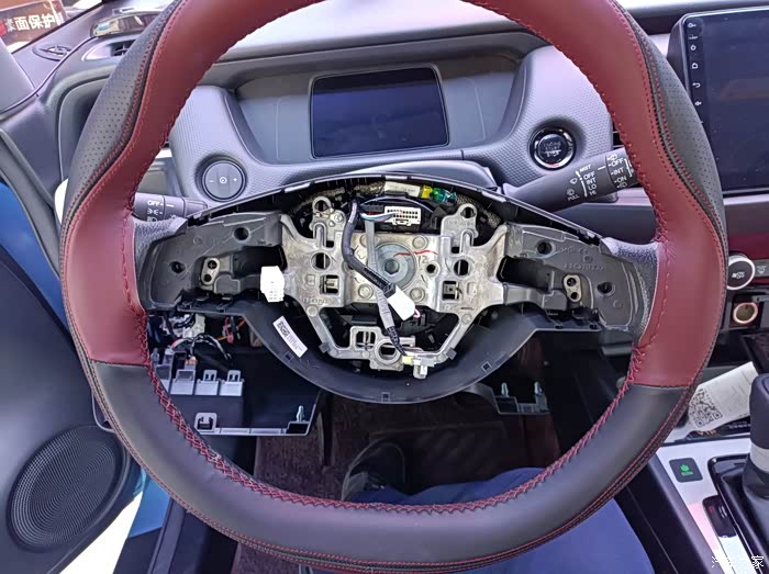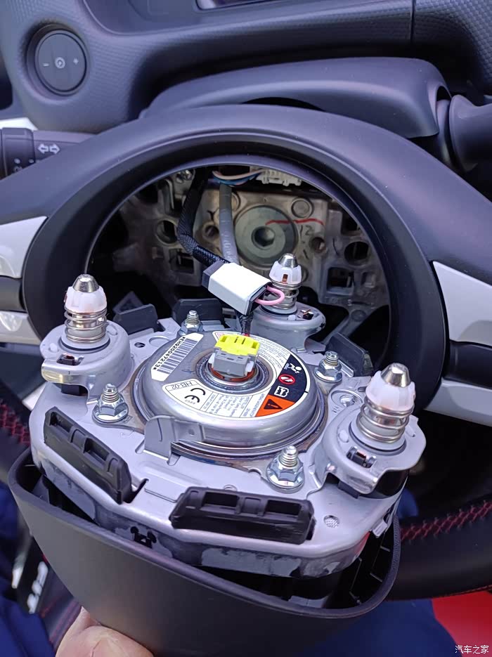 方向盘拆气囊很好拆,左右下3个洞,里面三个卡子,用螺丝刀定一下,气囊自动退出来