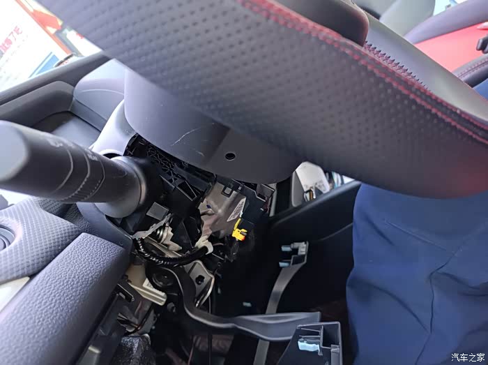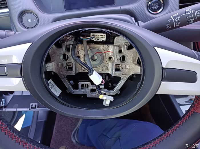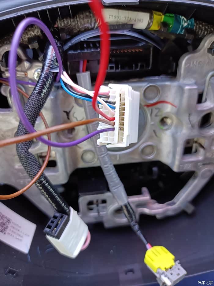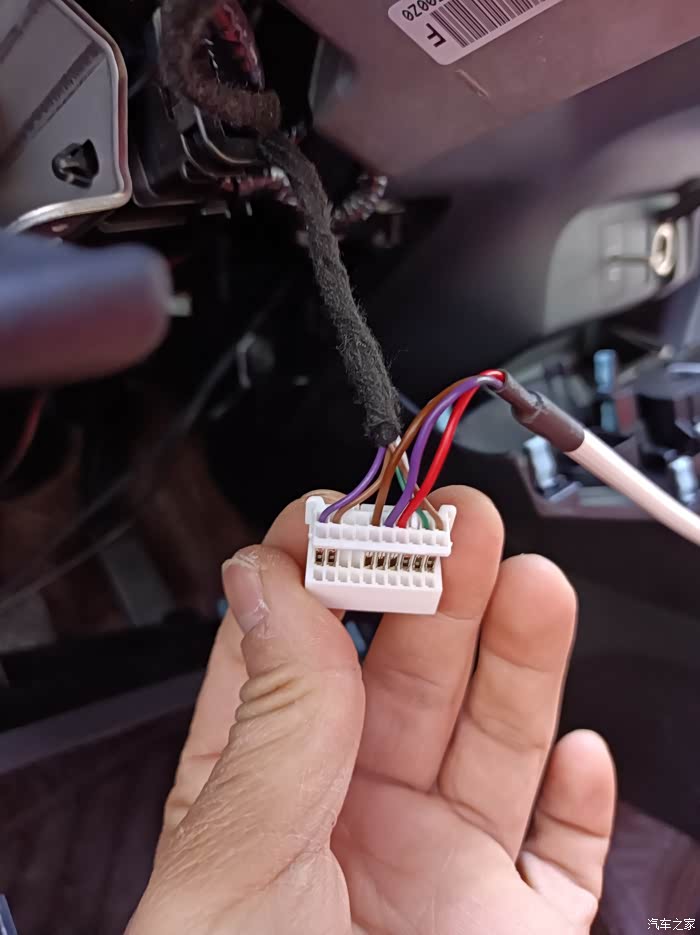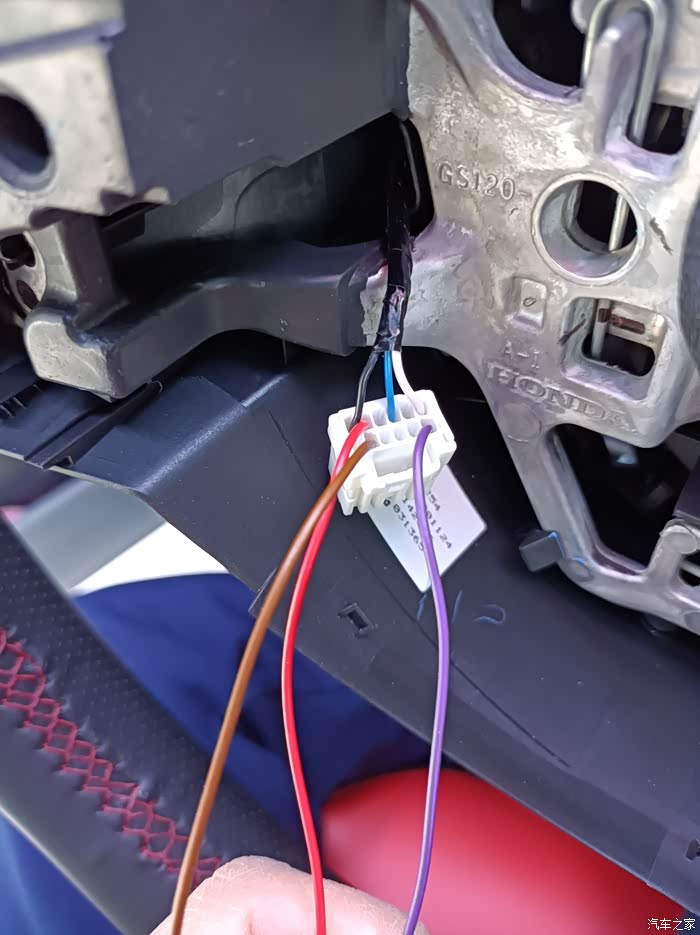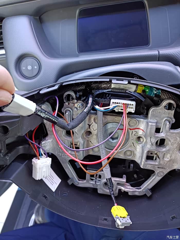 这是方向盘下的插头,同样先把后盖扣开在插插针,