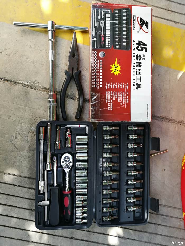 这是工具,实际上只用到8mm和16mm套筒,还有尖嘴钳。由于我爱自己动手,所以就配了一套多功能工具放在车上。换空气滤、清洗节气门都能用多功能工具包搞定。