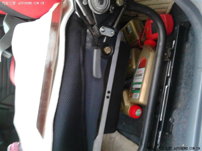 最简单的解决座位坍陷的办法,就是拆除座位左边的那个塑料板,再直接从真面插入一块胶木板(这个在五金市场卖电表箱的店家这里能买到)最好用胶木板这样太阳晒晒没什么问道,用九厘板的话有味道的,这个非常便宜的10快都不到,但是自己切割的时候最好大小刚好能看到弹簧2个U管,不要太大。
