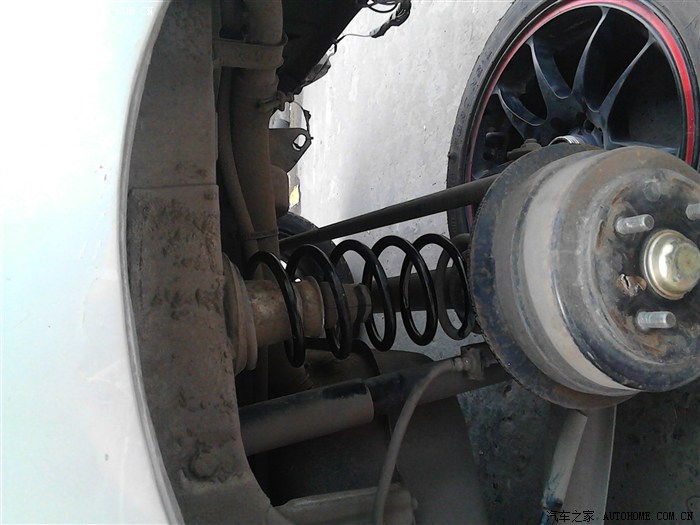 特别因为改装大轮毂后容易打到轮眉,轮眉上面有个突出的焊接点又最容易削刀轮胎,不改避震直接上轮胎是非常危险的,请大家改轮胎前一定要先把减震上的弹簧上减震胶,4的一般上个减震胶就可以,14的上2个减震胶,或把避震换掉,最经济的是上减震胶