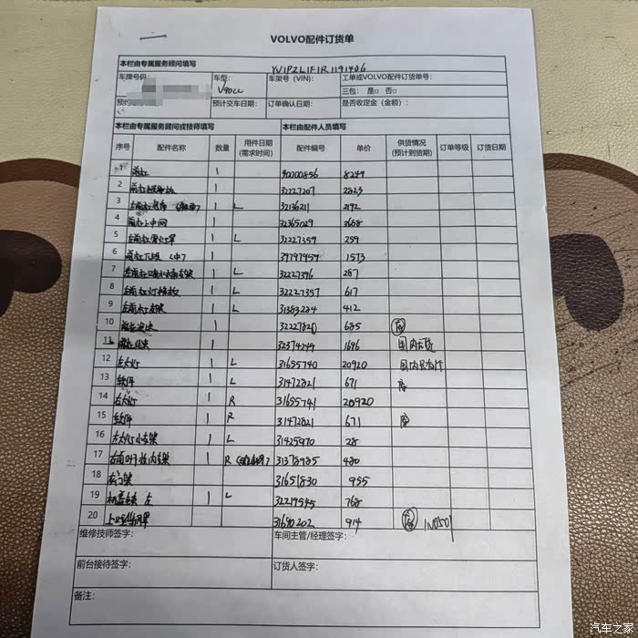 总结一下:在对方全责的情况下,还是要尽量对受损件只换不修,起码在质量方面,沃尔沃官方还是有所保障的,所有配件也都可以溯源,没必要为了保险那点儿补偿原则维修受损件。