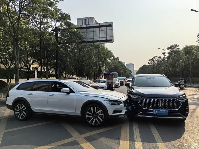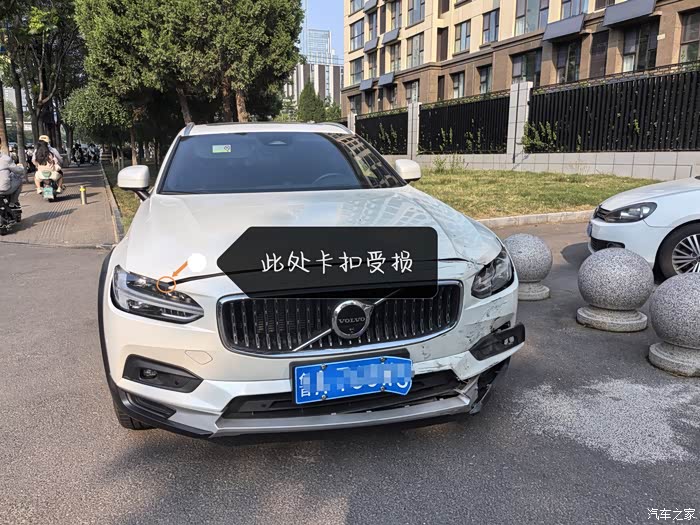 仅看外观,V90右前侧受损有些严重,目测前杠,右前灯,发动机盖需要更换
