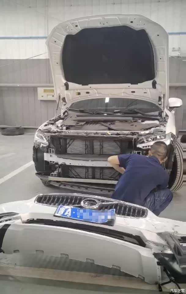 经过店里的仔细检,除了左侧灯受损外,右侧灯虽然外观没有任何受损,但是因被变形的发动机盖挤压,固定用的一个非常小的塑料卡扣断掉,对方保险私下找我协调是否可修不换,给我一定的补偿,我还是要求只换不修