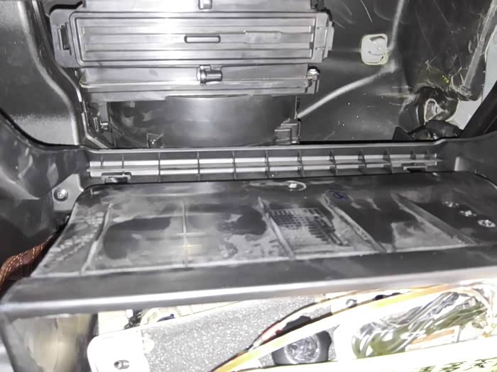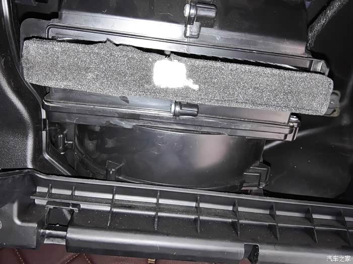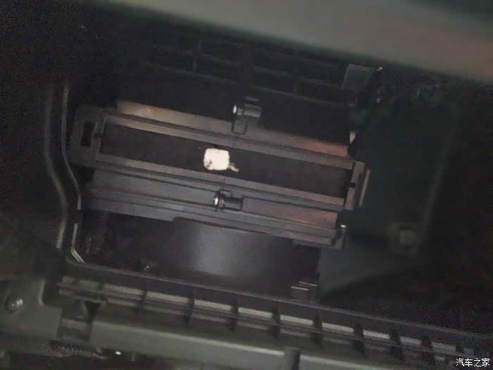 取出手套箱后,可见到空调滤芯的盖子
