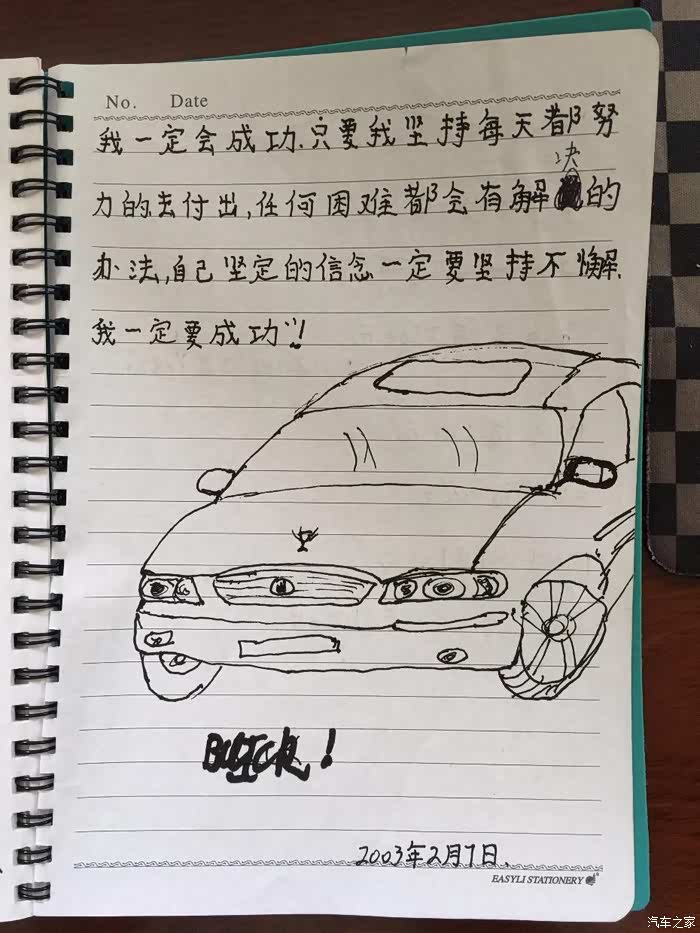 随着时间的推移梦想就像一块心魔一样一直压在我的心里,那时候没事了爱写写日记,虽然字不怎么样,但想想也是人生的经历吧。自己就在日记本上鼓励自己,同时也在上面画下了自己的梦想!(致自己,有空将继续写下去!