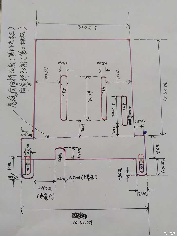 对比宝来孔位,小缺口估计我手工测数据时有误差切长了点,不过不重要,重要是上下两个大孔位置对上就行!