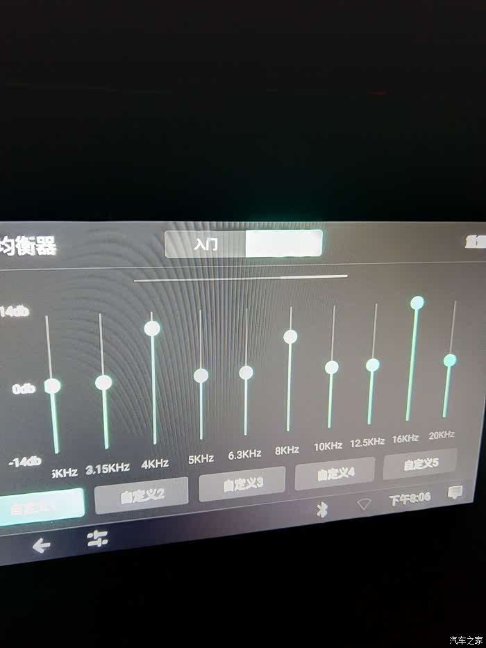 31EQ音阶调节是这机子的最大亮点,如果你不是音乐老师或对音乐调节不懂的话,你真调不出好听音质来,不会调的话这机子对你来说就是个废物!因为它没有其它车机有什么“摇滚、古典、流行.......”等等的选项!全部都是手工调EQ,有个“入门”选项也只有高中音三个阶是你无法忍受的烂音质!,我这是请来当音乐的老师手把手讲解才知道人耳对音乐各频率的敏感频率范调出好音质来。