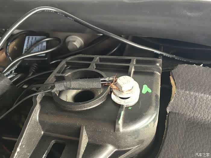 降压线的另一条黑色地线需要搭铁,拧在车身钣金任意螺丝即可