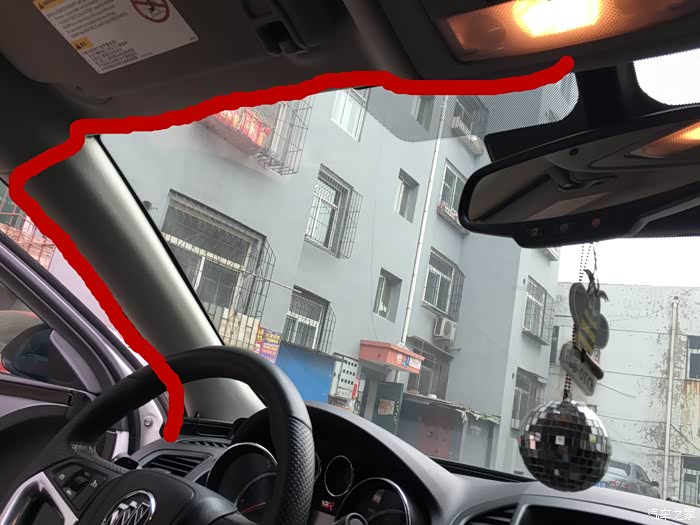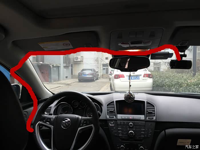 行车记录仪是我自己早就安好的,很多车友问我如何取电安装,我就统一写一个教程好了。红色线路是降压线的线路,先把行车记录仪安装好位置,插入miniUSB接口,顺着图示线路走线。