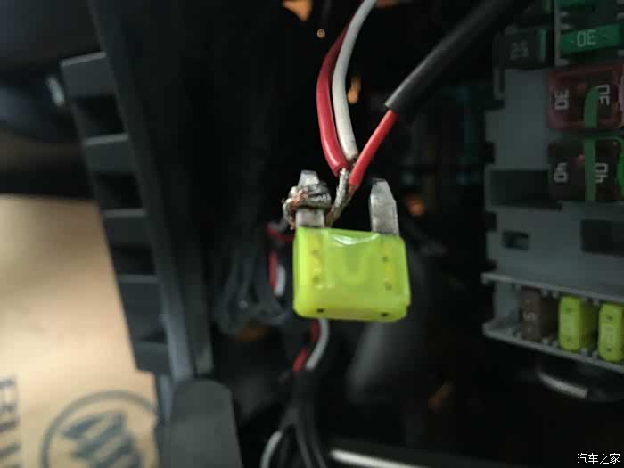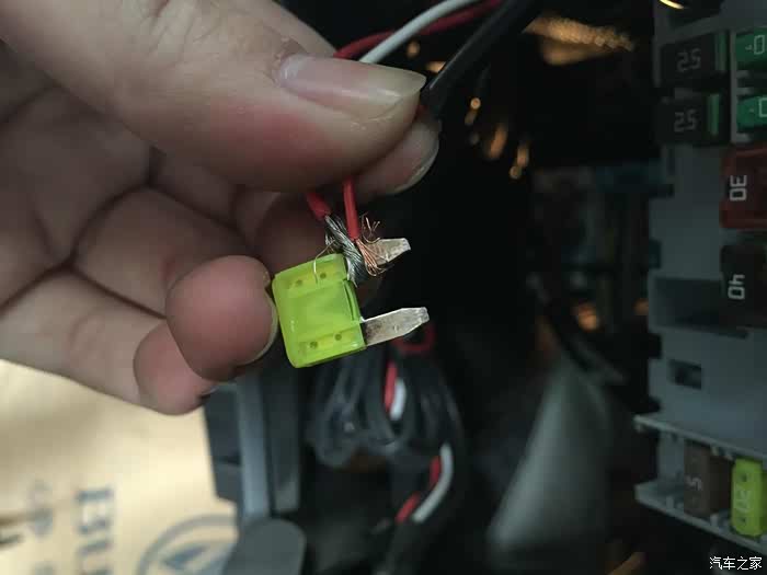 保险取电很方便,但是千万不能短接保险丝,否则保险丝失效是很危险的,像这样缠在一个脚上就好