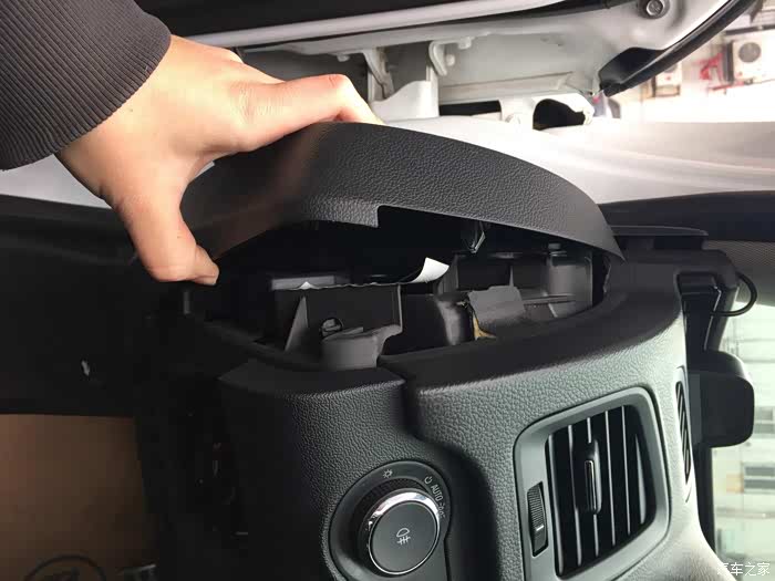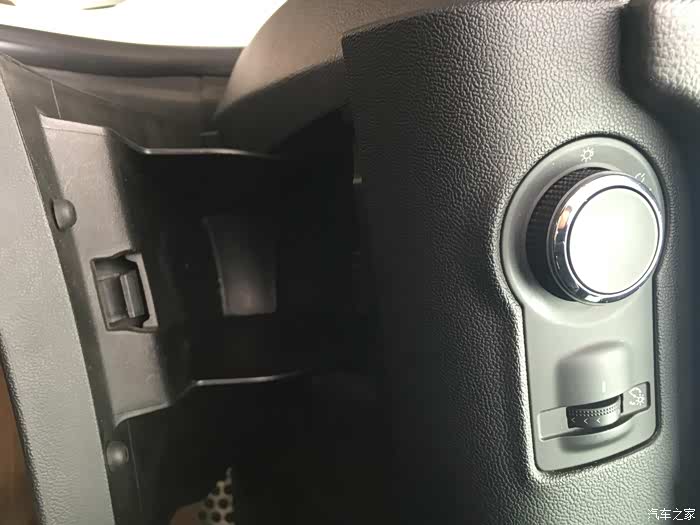 这时就到了保险盒取电的时候,车内保险盒在灯光控制纽下边,打开储物盒