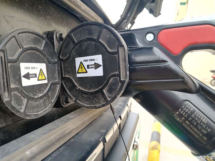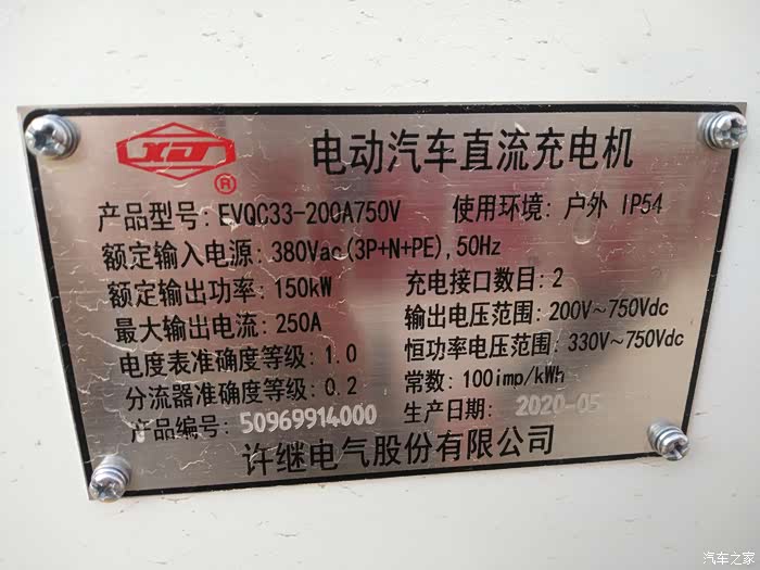 车头的充电口防尘盖上写着750V/200A,输入功率应该是750×200=150kW