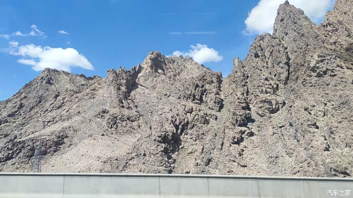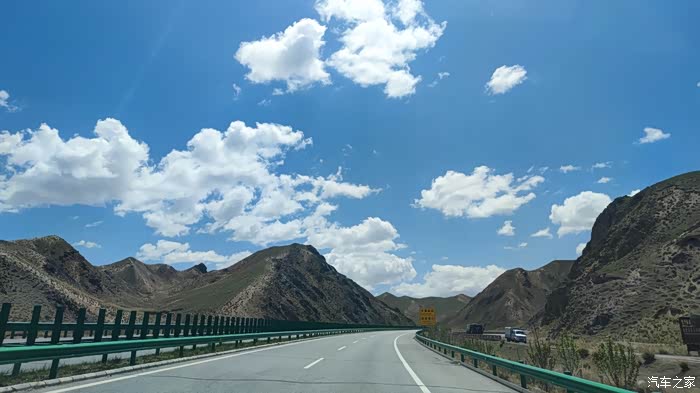 从格尔木去往茶卡的高速路上。海拔3560米。天蓝,云白,地荒。隐约可见昆仑雪山。在高速上,爬坡上山,最好用运动模式,提速快,超车快。