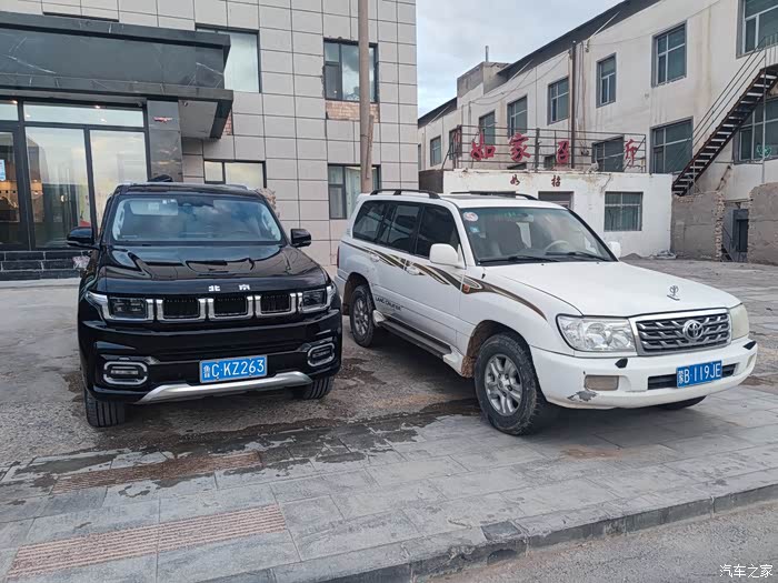在青海茫崖近3000米地方住宿。宾馆外面,北京60和丰田GXRV6,不期而遇。丰田的车主来自内蒙,对60很感兴趣。问了价格和基本参数。