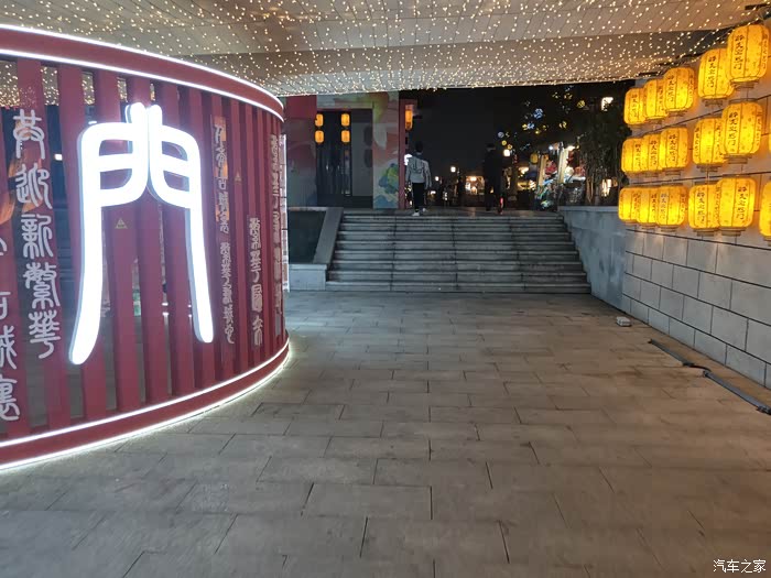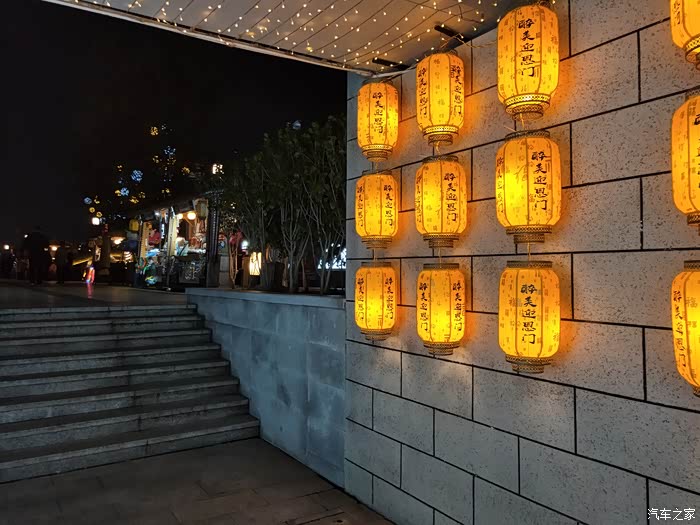 这一排排的灯笼比较有特色。黄色的灯,如果是红色的,就会另一种景象。