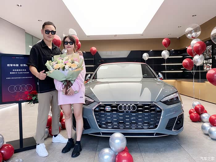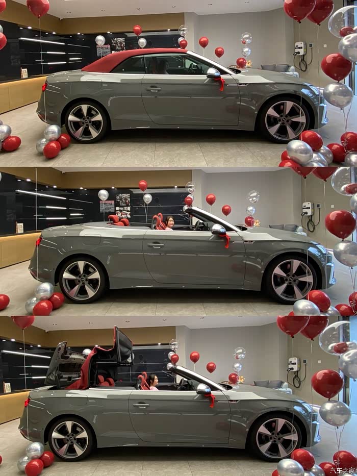缘分就是这么简单,车展最后1天,上午我们去了机场保时捷中心试驾,下午打算去金牛保时捷在看看,合适就定下来。结果大儿子腹泻接到他后看车的时间被压缩了。我说去金牛保时捷那边太远了,要不去附近的奥迪4s店看看。因为之前咨询S3的时候加了销售经理微信,发现他那里有一台S5敞篷的现车,那个时候可能就已经种草了。到店后看车,试驾,订车。1个小时就搞定了。非常愉快的一次购车之旅。到最后把车定了,媳妇是蒙圈的状态,她说不是给我去定保时捷吗?怎么变成了这款车型,s5是什么车,我都没听说过??哈哈,允许我小小的私心。也谢谢你的支持。