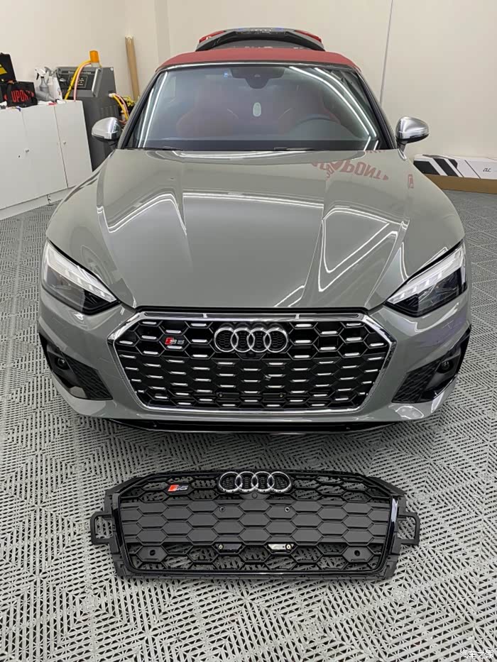 外观方面,隐形车衣保护原厂油漆,整车调色处理(黑化全车镀铬装饰、轮毂卡钳改色)加装一条碳纤维的小尾翼。敞篷版的s5原厂没有尾翼屁股看上去不够饱满。