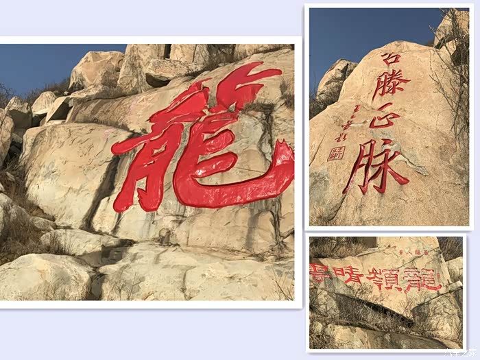 景区内有国内最大的单体“龙”字摩崖石刻,景区核心主峰------龙首峰海拔为517米,山中有乾隆皇帝御书“龙”“福”字的巨型摩崖石刻,三面观音大型塑像矗立在山中,远远的就能看见。刘墉敬师处、巨龟石、弥勒佛、八戒嘴、一夫当关母子井……等一道道景观。