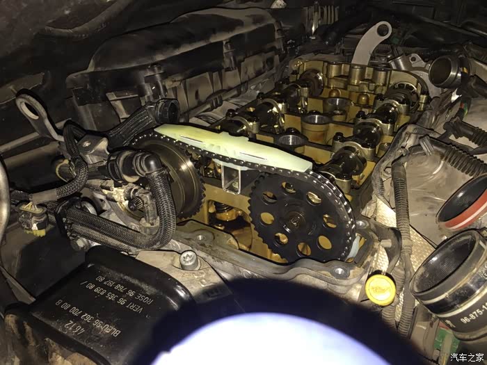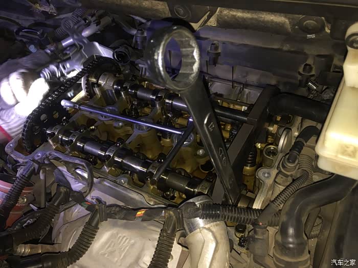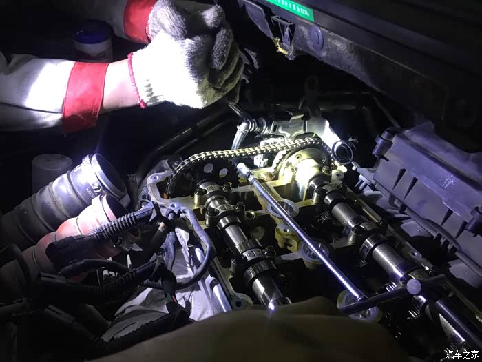 老兵为1.6T更换正时链条 车友之前说就是因为自己保养了一次以后慢慢就发现发动机冷车的声音变大了,加速大约