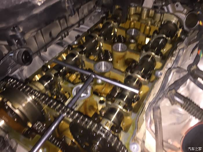 拆掉气门室盖子后看到链条等部件