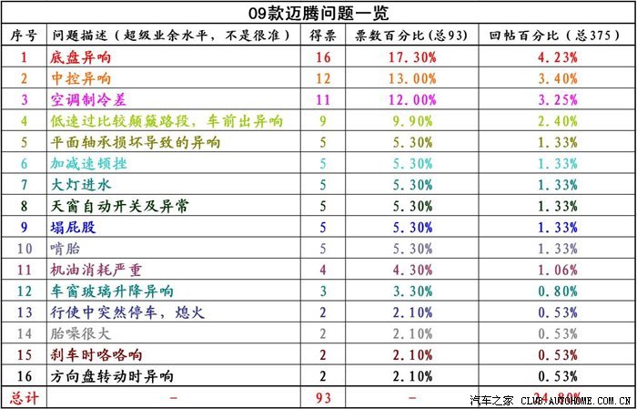 凡是购买迈腾的每一位车主,自己在使用迈腾车的过程中,遇到较为常见和普遍的问题都可以反馈出来,比如:啃胎,转向灯进水蒸气,平面轴承异响,烧机油,中控异响等等,都可以反应出来。汽车之家迈腾论坛联合广大迈腾车主为自己的权益进行维权,所有问题会集中到这个帖子,直接反应到一汽大众厂商。