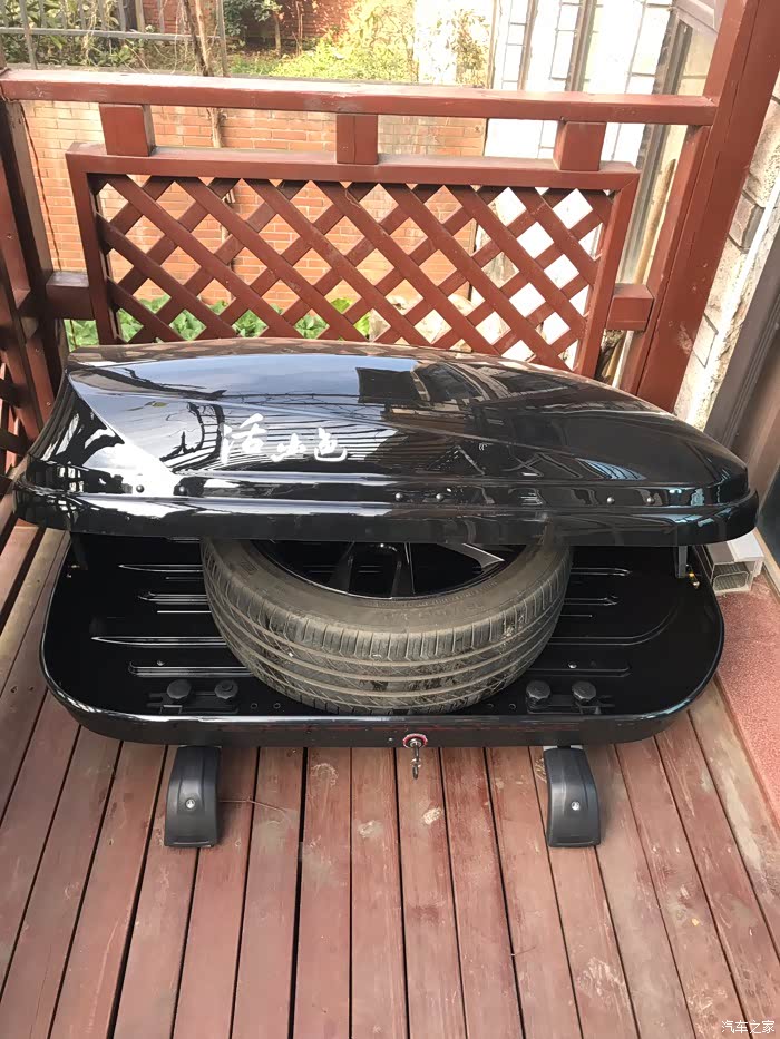 车顶行李箱可以放下备胎,给各位车友参考,已一个人放上车顶