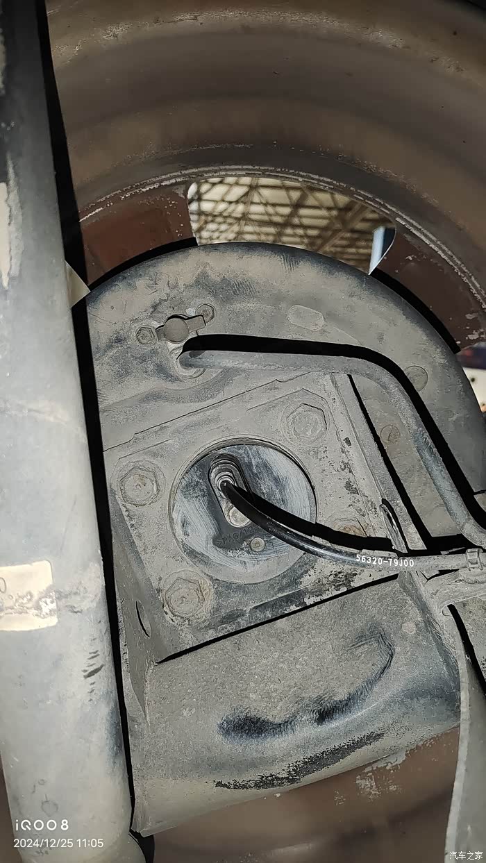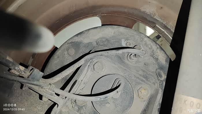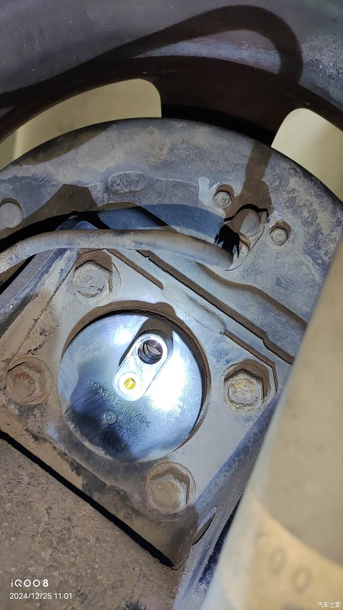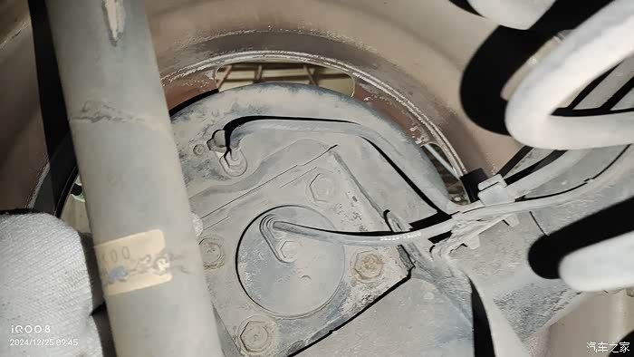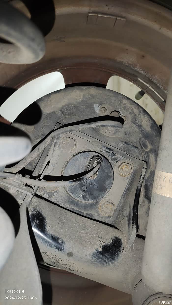 我的天语是2007年7月份的老款,后轮鼓刹车,刹车油管是铁管子,圆形上面的应该是ABS传感器位置。
