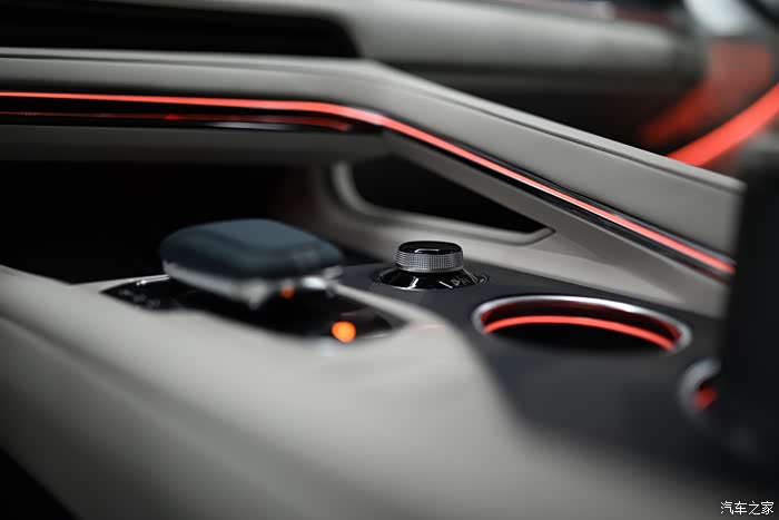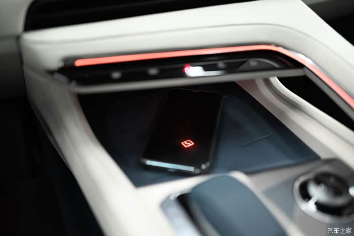 我特别喜欢的一个细节,中控前方手机无线充电区域,放置手机之后主驾可以看到极氪的logo,挺惊喜的