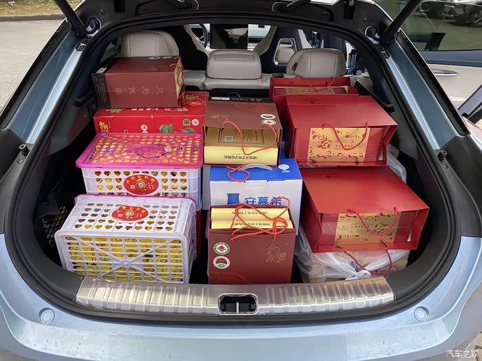 硕大的后备箱超级能装,大箱水果可以装15箱左右