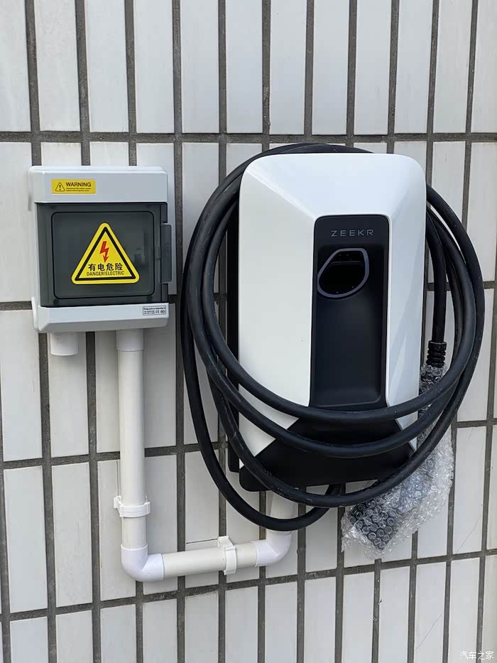 充电桩,安装过程很规范,管线横平竖直