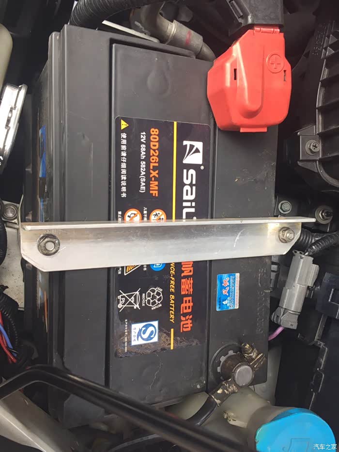 原车的电瓶太小了,拆了原车电瓶罩和底座,电瓶杆通过加长螺杆,通过比较用铝合金型材做了压杆,又轻又牢
