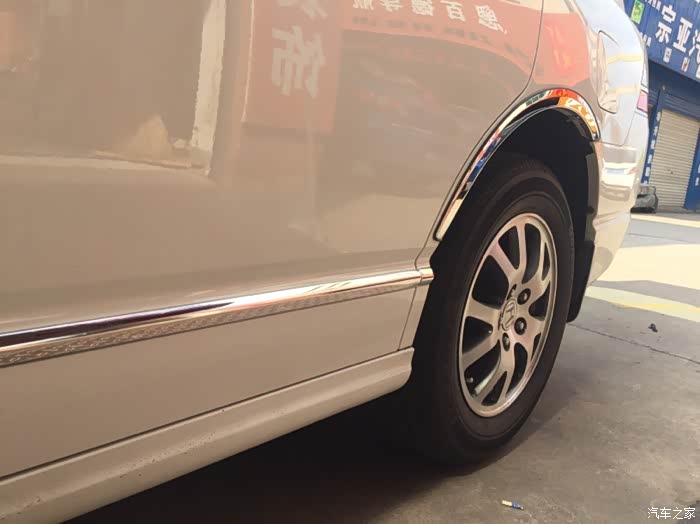 原车车门防擦条有擦痕,直接不锈钢,为沿伸加了轮眉