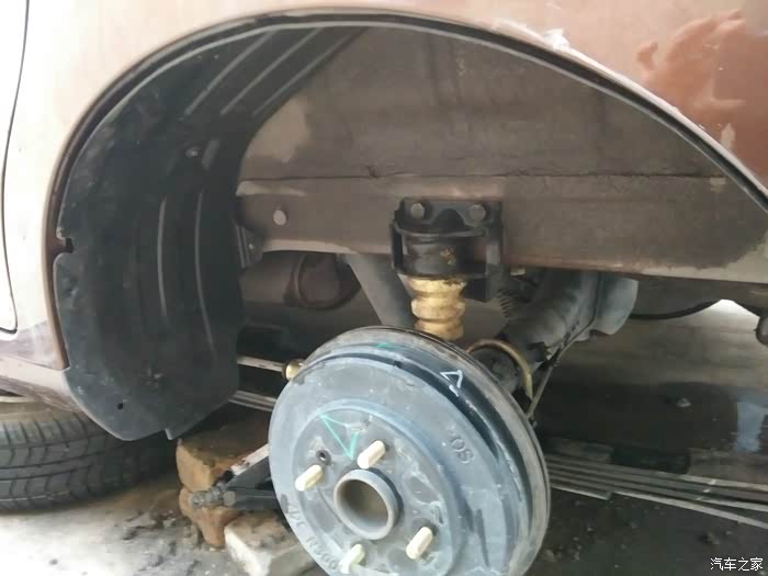 这个是后右侧,拆下轮胎跟左边不同的就是那根黑色的管子,具体作用还不知道。由于天黑了,就这样吧,用水管冲洗后一直晾到第二天早上。明儿见!!