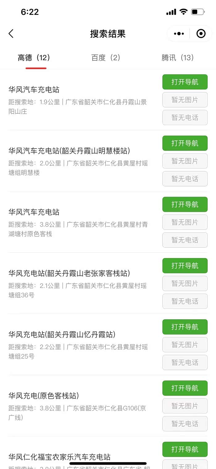 但各家的都只能搜到自家的桩,用起来很不方便,而且到了小城镇地区,很少有品牌方的桩,很多都是个人经营或单位机构的桩,用上面的app是搜不到的,这个时候只能看导航地图了。但各家导航地图的数据库也各有参差,有的站是高德有的,而百度和腾讯没有收录,有的腾讯有收录的,高德反而没有。