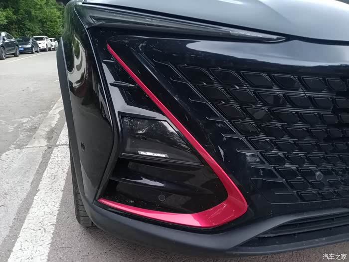 这前杠上的红色装饰给车带来了一种运动的气息