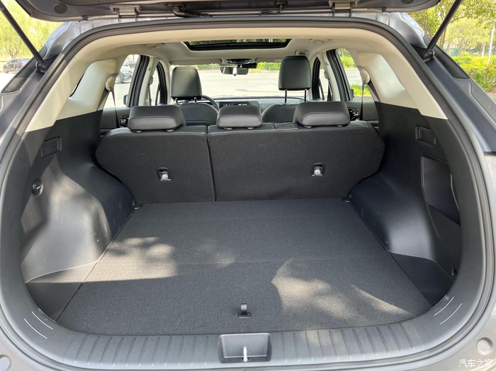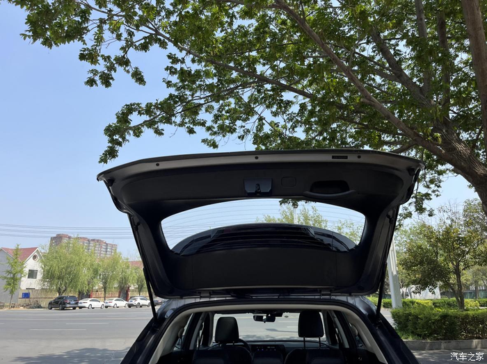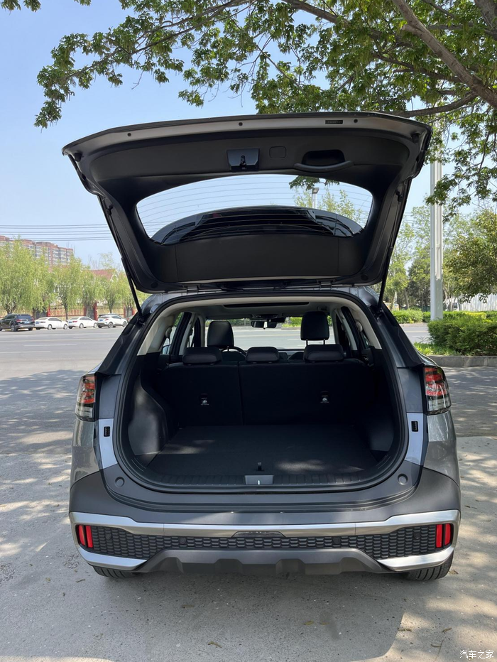 尾门一开启,后备箱是不是很大?可以装很多东西,曾去户外露营游玩,将后排座椅放倒后,和后备箱连成了一块,能铺上一张床垫。