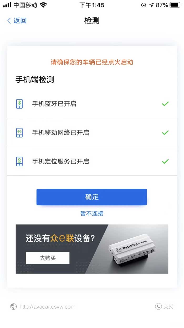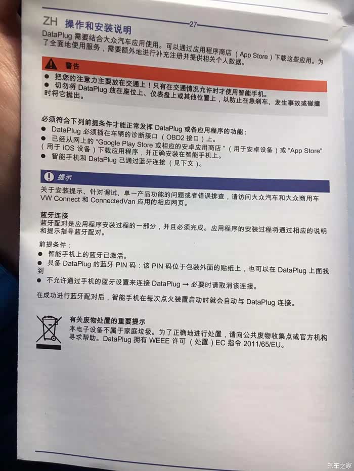 看说明书众e联理论上是支持所有大众车型的OBD数据读取的。