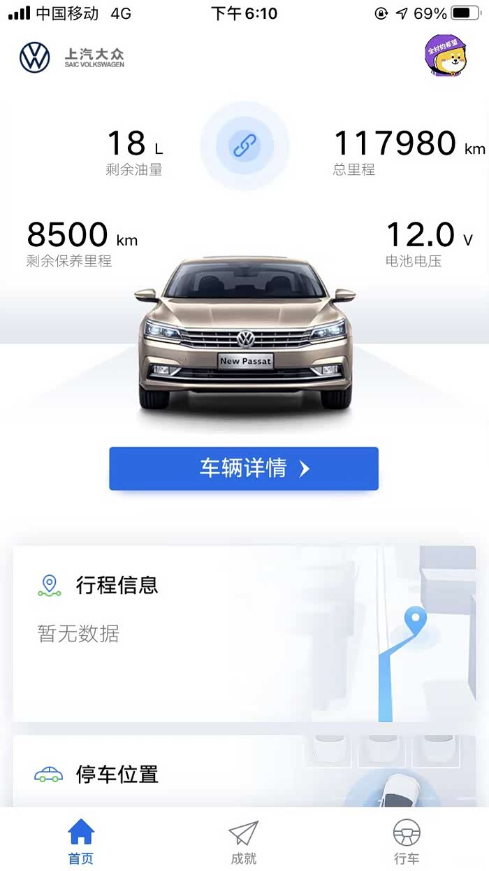 众e联还可以记录你的驾驶过程中的急刹车次数、行驶时间、里程、最后停车位置等。