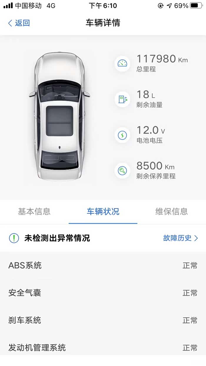车辆状况里面可以查看各种系统的工作状态是否正常。