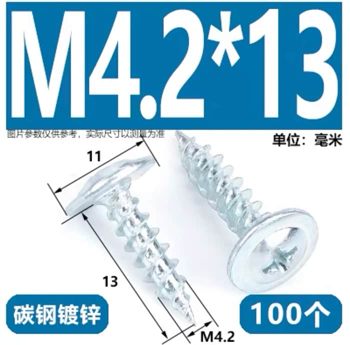 固定拨片的2颗螺丝参数: M4.2*13 大头自带垫片螺丝 (大头直径10.8mm 大头厚度1mm 螺纹直径4.2mm 长度13mm)