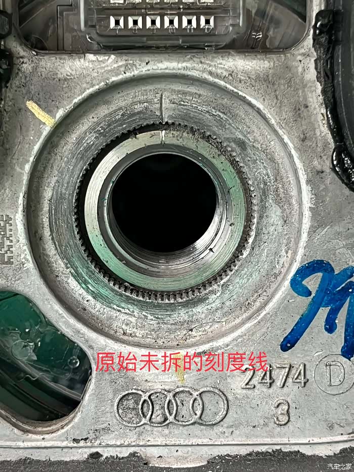 记住原方向盘对位的刻度线没匹配之前不要随意转动游丝(旧的游丝拆下绑扎带下次用,不需要再做复位)