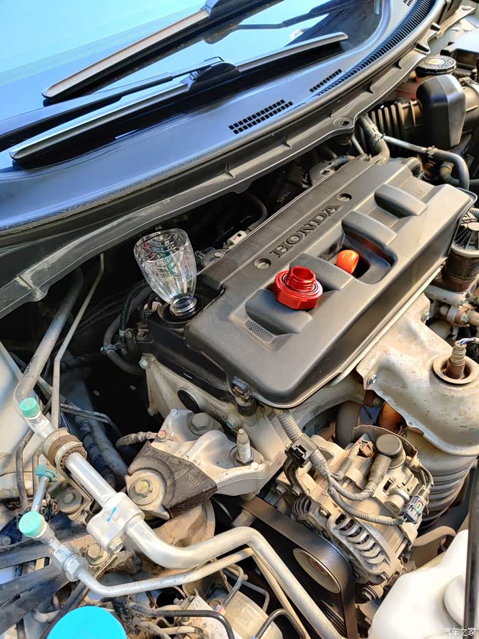 京保养统一的机油桶侧面没有刻度。开始觉得没什么,实际操作起来发现确实麻烦,怕加多了,开始痛快地倒,后面就不敢多加了,只能倒一次看一次油尺,来来回回地看了好几次,耽误功夫。