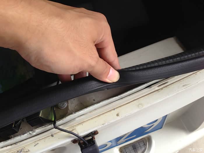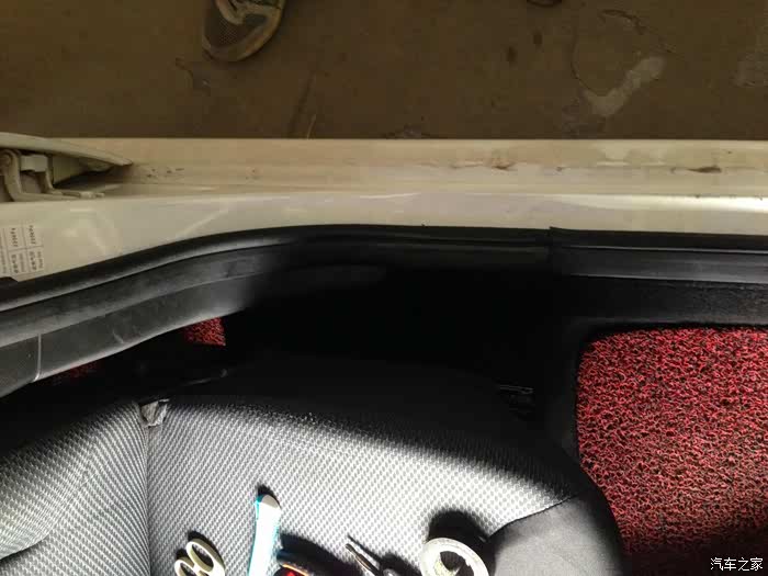走线从这个孔出,一直沿着车门的密封条走就可以了,这个大部分人都知道吧,我就不细说了。