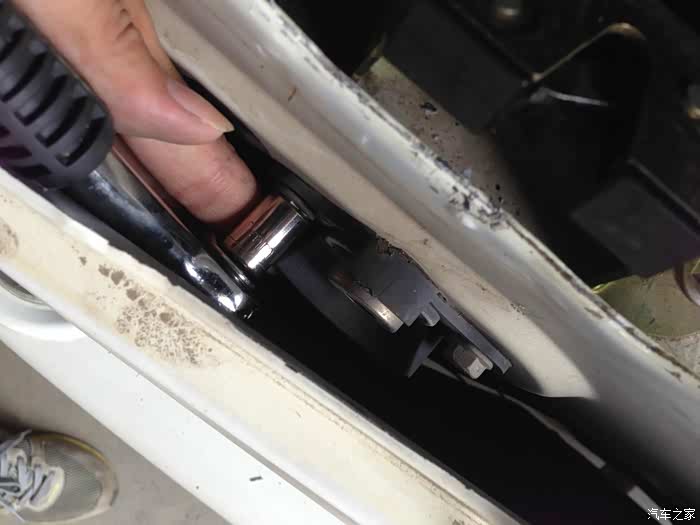 卸下尾箱内部的塑料盖板,这个没难度,直接用手拔。