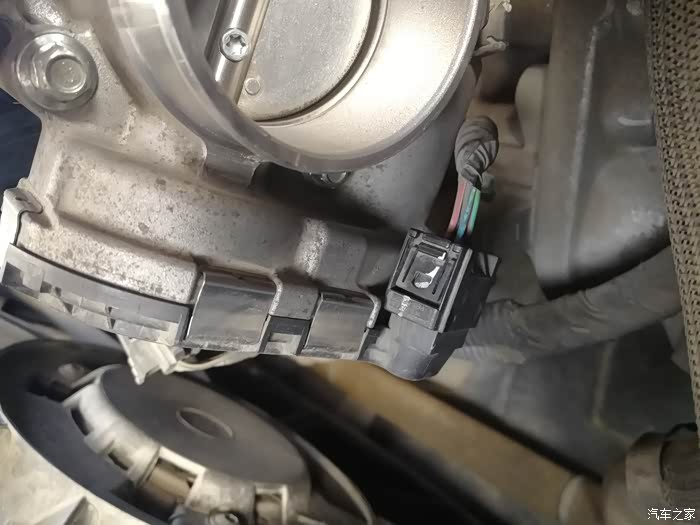 拆下节气门之前,记得要先把上图节气门的接口拔出来,两边按下去拔出来,可能需要用点力,有点费劲