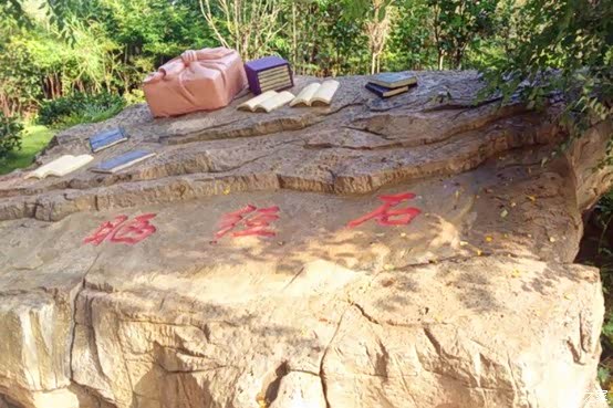 当时老龟托唐僧问如来前途,结果唐僧光激动了忘了问了,所以老龟就把唐僧师徒都扔水里了,取回来的真经都湿了,就是在这块石头上晒干的。真够曲折的了!!!