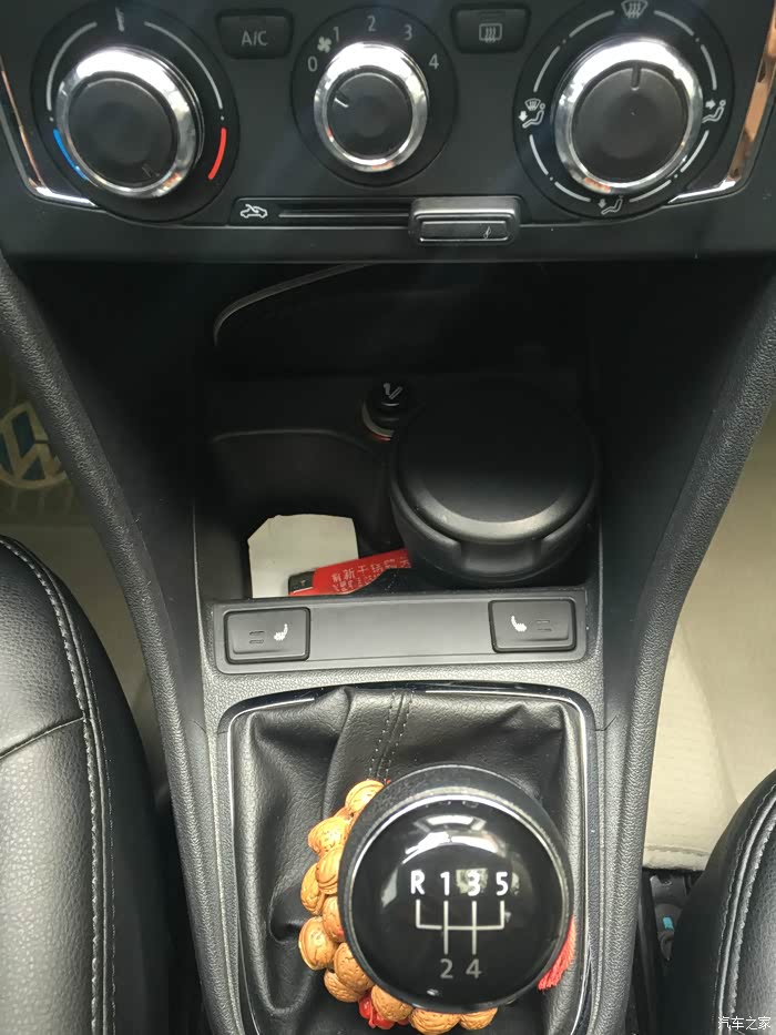 旋钮 也是前段时间才换的 换完颜值上去点 手感不好。。。太涩了。底下俩按钮是座椅加热 买车多加800元原厂带的。。。天冷了很实用~~座椅包了真皮所以前排就不用套坐垫 套上坐垫这个功能基本就废了 没啥用了