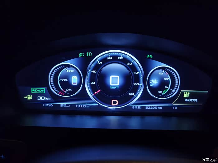 行驶至191公里,续航30公里,总续航221公里,提示要充电了